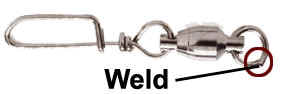 ![]() The author considers welded rings a must on heavy-duty swivels, but prefers those with rings on either end. |